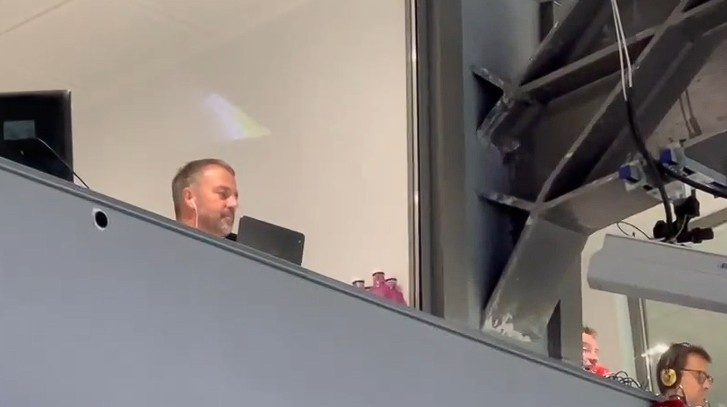 远程指挥,本场被罚停赛的弗里克出现在伯纳乌看台