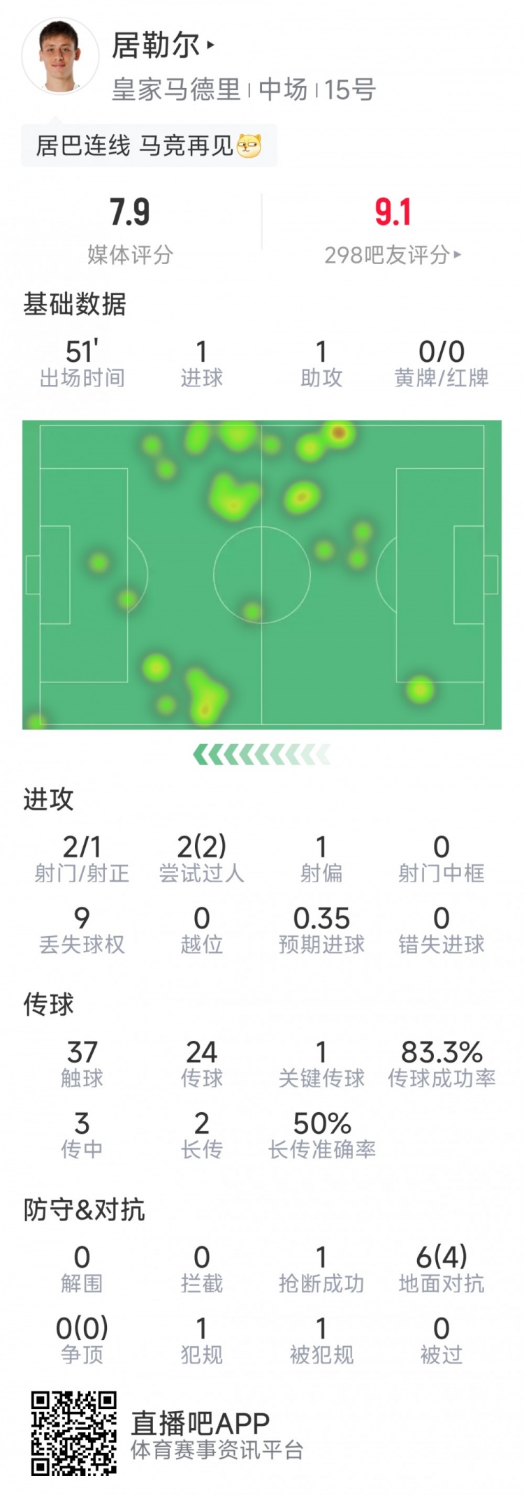 9月27日讯 本轮西甲马德里德比半场战罢,双方2-2战平,苏超在线直播高清视频无插件居勒尔传射建功。以下为他在半场数据: