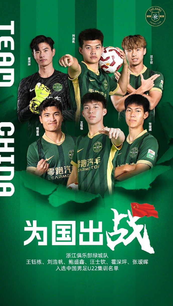 浙江6人入选U22国足,刷新队史单次入选U22国足最高人数记录