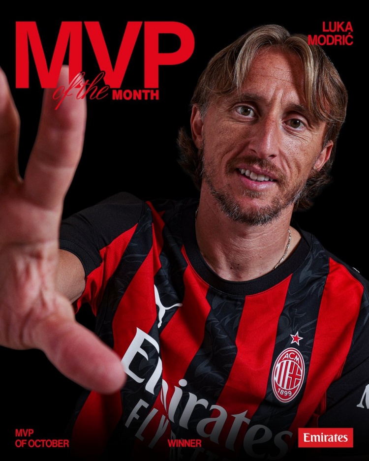 11月1日讯 米兰官方宣布,40岁莫德里奇当选队内10月最佳球员。
